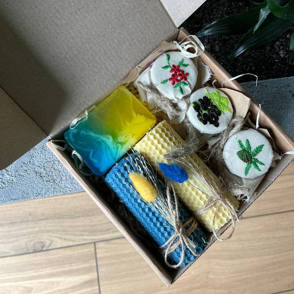 Подарунковий набір 1463,00 ₴ Склад набору: – мило ручної роботи, 60 г – 2 свічки із вощини (10*3,5 см) з декором S – карпатське варення, 42 мл, 3 шт. Подарунковий набір 1 кількість Додати в кошик Артикул: 1 Категорії: До дня Вчителя, Подарункові набори Позначок: ексклюзивний подарунок, Мед, медовий набір, Мило ручної роботи, набір для подарунка на свято, оригінальний подарунок, подарунковий набір для жінок, подарунковий набір ручної роботи, подарунок вчителю, подарунок для дівчини, подарунок на будь-яке свято, подарунок на день народження, подарунок на Миколая, подарунок на Новий рік, подарунок на Різдво, Свічка, святковий набір, унікальний подарунок ручної роботи, хендмейд подарунок Додаткова інформація Додаткова інформація Вага 1 кг Схожі товари СвічкиСвічка 13 см із декором M 145,00 ₴ Оберіть опції СвічкиСімейне вогнище «Класика» 450,00 ₴ Додати в кошик СвічкиСвічки для хрещення «Улюблені кольори» 265,00 ₴ Додати в кошик