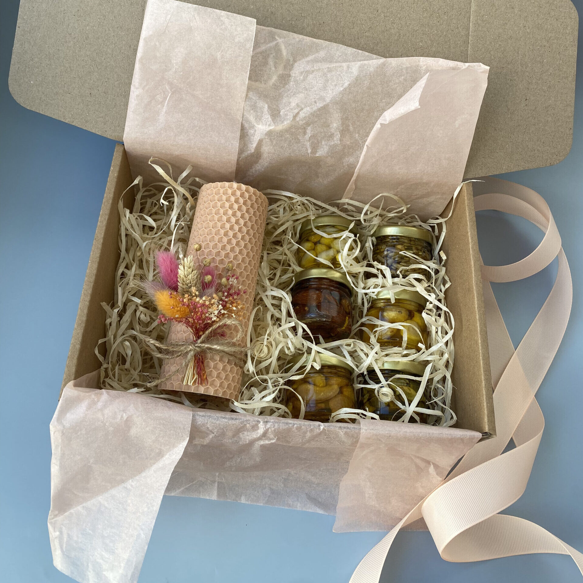 Подарунковий набір 4416,00 ₴ Склад набору: – свічка 13*5 см з декором М – мед з горішкам та насінням, 30 мл, 6 шт. Подарунковий набір 4 кількість Додати в кошик Категорії: До дня Вчителя, Подарункові набори Позначок: ексклюзивний подарунок, медовий набір, набір для подарунка на свято, оригінальний подарунок, подарунковий набір для жінок, подарунковий набір ручної роботи, Подарунок, подарунок вчителю, подарунок для дівчини, подарунок на будь-яке свято, подарунок на день народження, подарунок на Миколая, подарунок на Новий рік, подарунок на Різдво, святковий набір, унікальний подарунок ручної роботи, хендмейд подарунок Схожі товари До дня Вчителя/Подарункові набориПодарунковий набір 2 394,00 ₴ Додати в кошик До дня Вчителя/Подарункові набориПодарунковий набір 16 1034,00 ₴ Додати в кошик До дня Вчителя/Подарункові набориПодарунковий набір 38 501,00 ₴ Додати в кошик