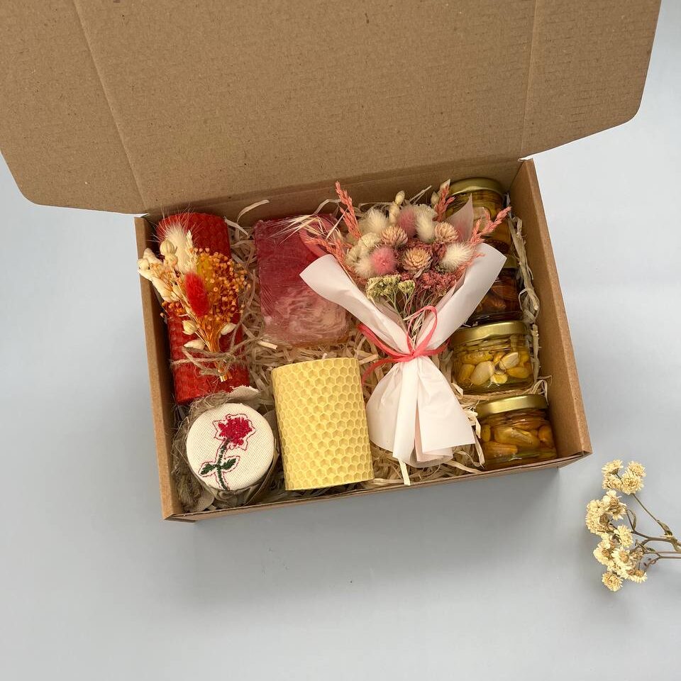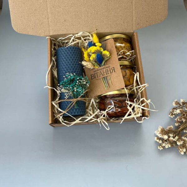 Подарунковий набір 57582,00 ₴ Склад набору: – свічка 10*3,5 см з декором М – свічка 6*5 см – мило ручної роботи – варення, 42 мл – букетик сухоцвітів – 4 баночки горішків з медом, 30 мл Подарунковий набір 57 кількість Додати в кошик Категорії: До дня Вчителя, Подарункові набори Позначок: ексклюзивний подарунок, медовий набір, набір для подарунка на свято, оригінальний подарунок, подарунковий набір для жінок, подарунковий набір ручної роботи, Подарунок, подарунок вчителю, подарунок для дівчини, подарунок на будь-яке свято, подарунок на день народження, подарунок на Миколая, подарунок на Новий рік, подарунок на Різдво, святковий набір, унікальний подарунок ручної роботи, хендмейд подарунок Схожі товари До дня Вчителя/Подарункові набориПодарунковий набір 30 585,00 ₴ Додати в кошик До дня Вчителя/Подарункові набориПодарунковий набір 7 147,00 ₴ Додати в кошик До дня Вчителя/Подарункові набориПодарунковий набір 2 394,00 ₴ Додати в кошик